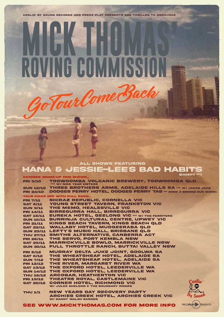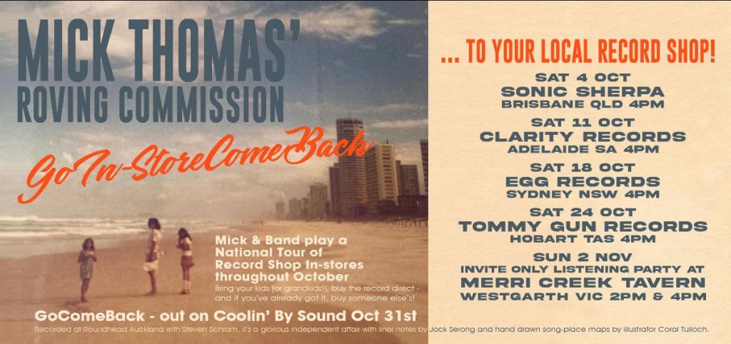 Mick Thomas’ Roving Commission’s new album GoComeBack is out October 31 on Coolin’ by Sound