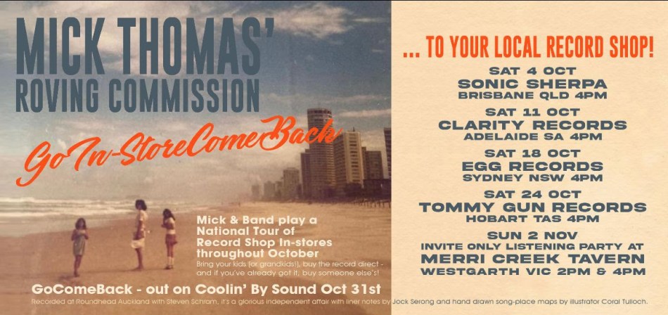 MICK THOMAS’ ROVING COMMISSION – the ARIA-Award winning former Weddings Parties Anything singer/songwriter and his band of fellow travelers – have an announced a new album, a new tour, and even a short tour of record store in-stores appearances in the lead up to the album’s release.